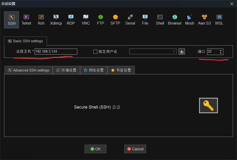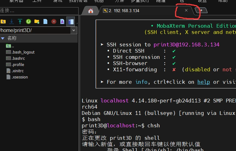 输入旧手机的IP地址,端口号默认22,这里可以指定用户名print3D和密码,后面双击该会话就不需要输入用户名和密码了,照顾小白我这里就没有指定了。