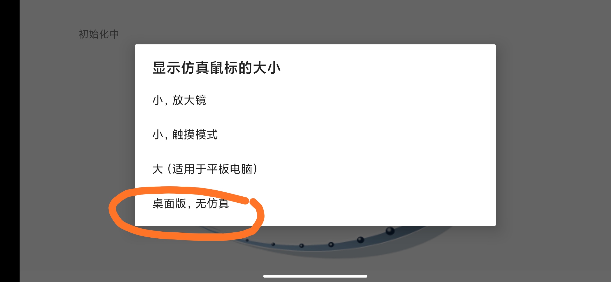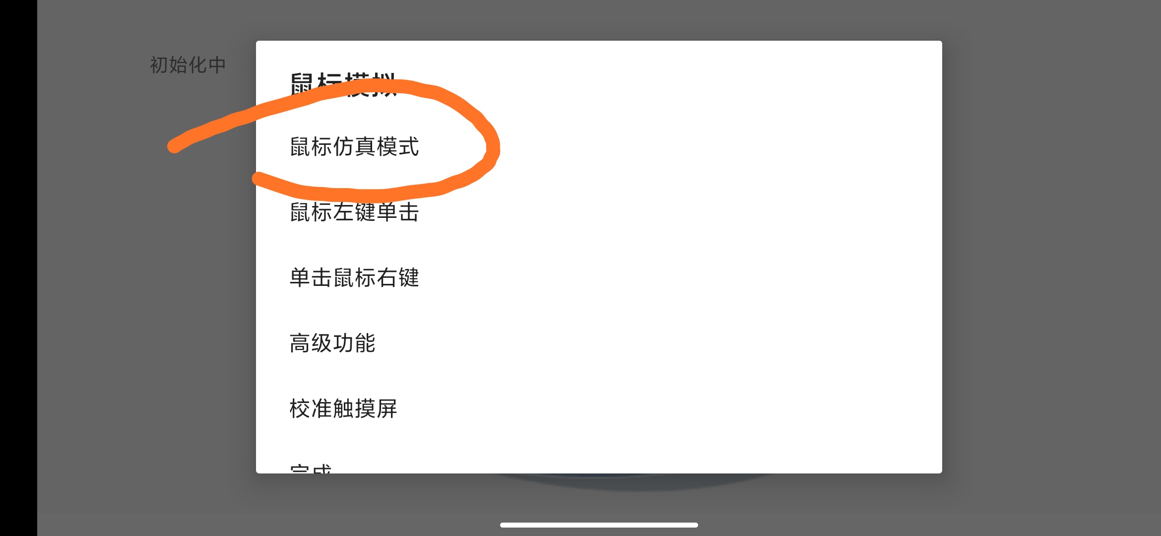 需要在第一次启动的界面点击屏幕上方 “更改设备设置” 按钮进入设置界面,依次点击“屏幕键盘”---“映射屏幕控件”---“取消三个复选框”---“完成”--- “鼠标模拟”---“鼠标仿真模式”---“桌面版,无仿真”---“完成”---“完成”。否则触摸无法使用。