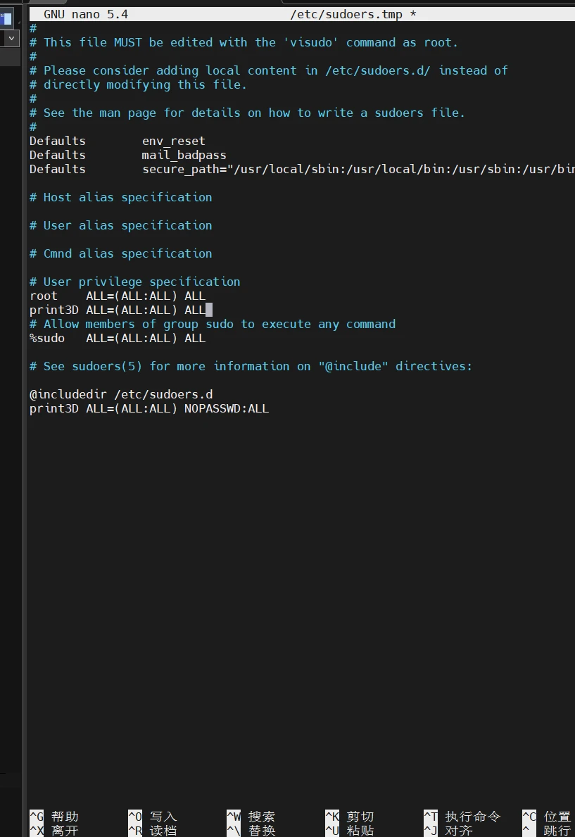 用户名切记一定要设置print3D,否则后面的脚本用不了,密码无所谓,你自己设置。