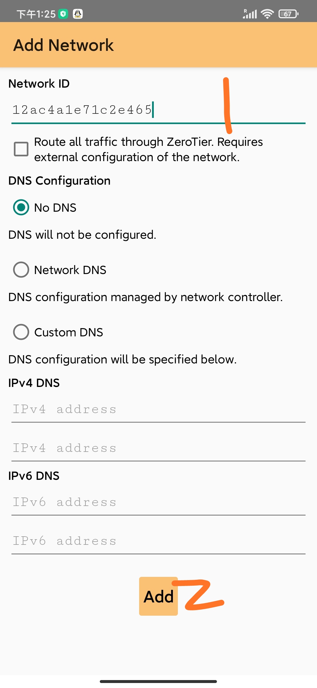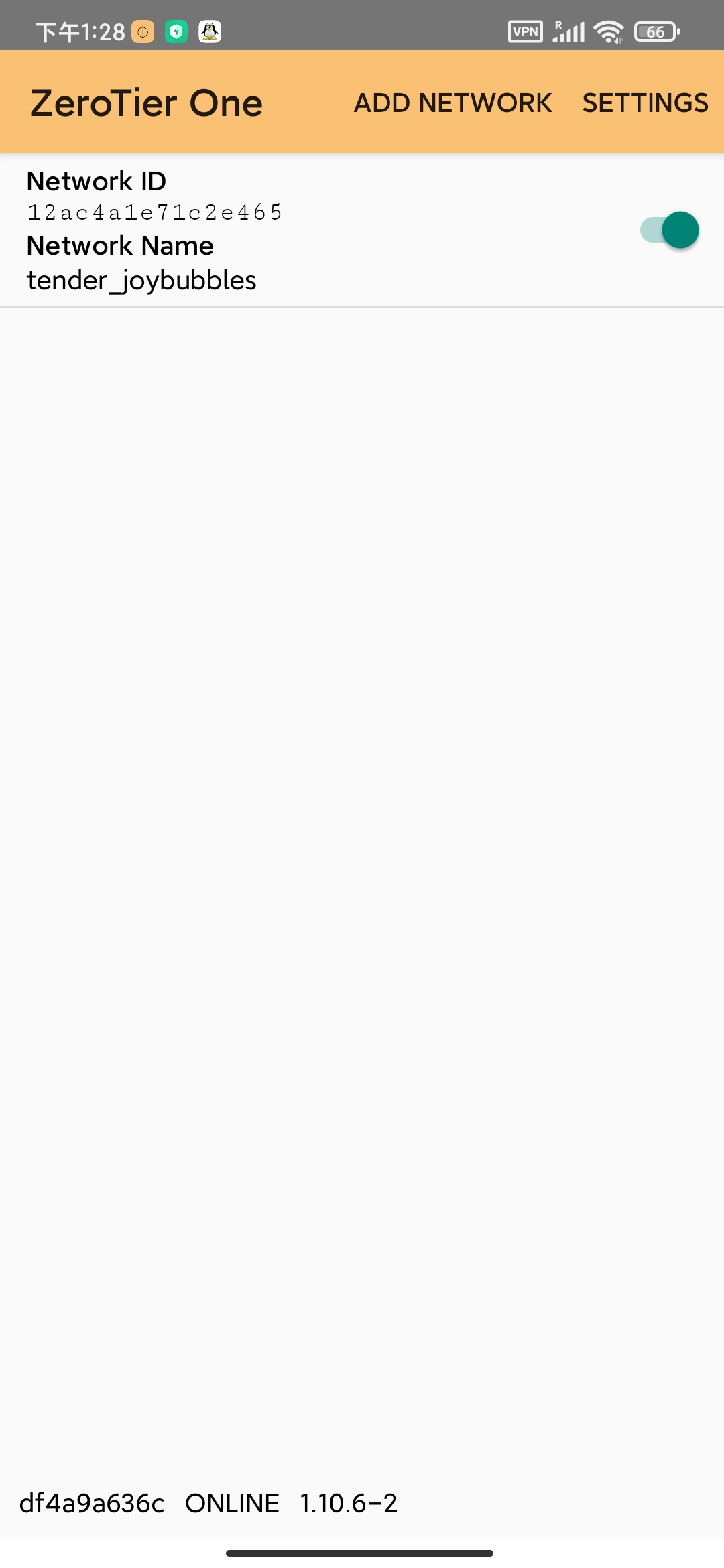 同理,在你自己在用的手机上也安装ZeroTier One,同样的步骤加入该网络ID。