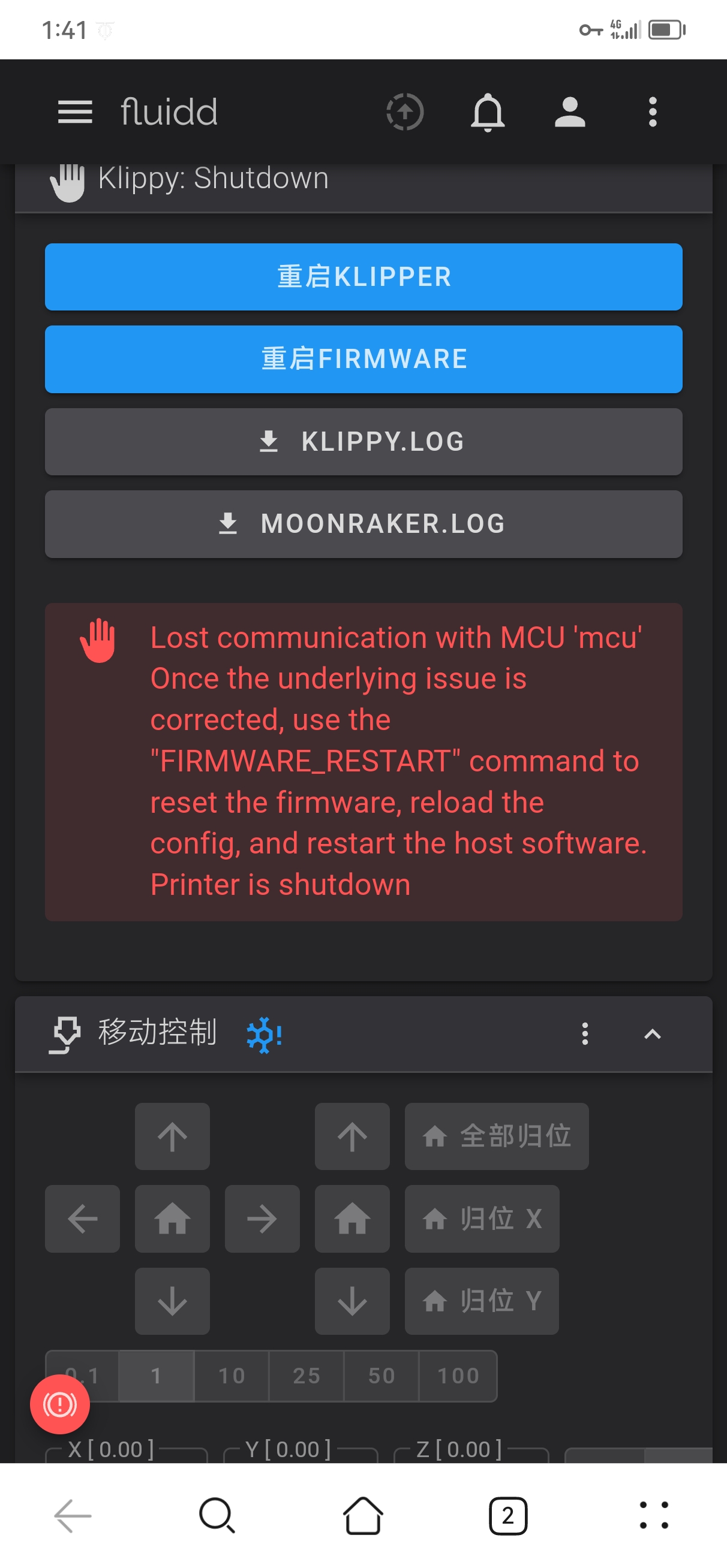 此时可以在浏览器输入你的IP地址打开fluidd界面