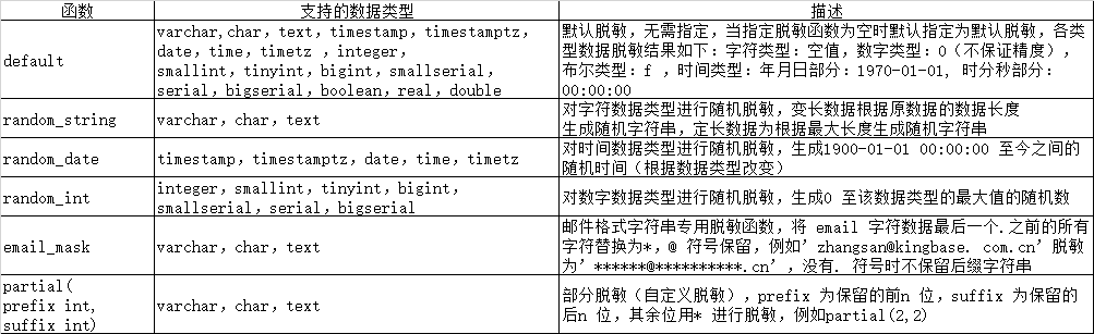 KingbaseES主要提供动态数据脱敏功能。
