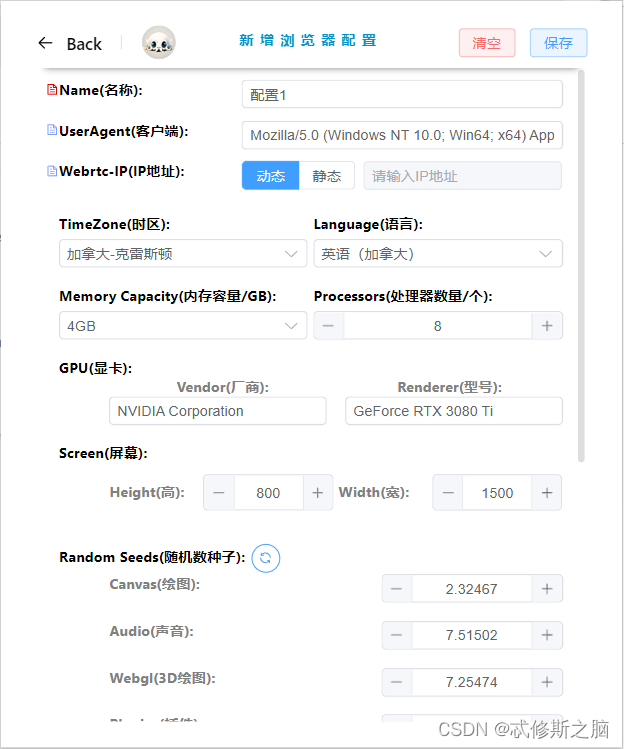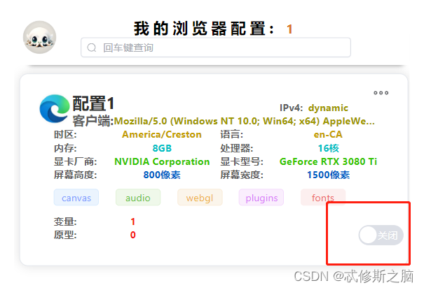 模拟设备的选项,会在随机生成指纹是生效,将会生成对应设备的指纹