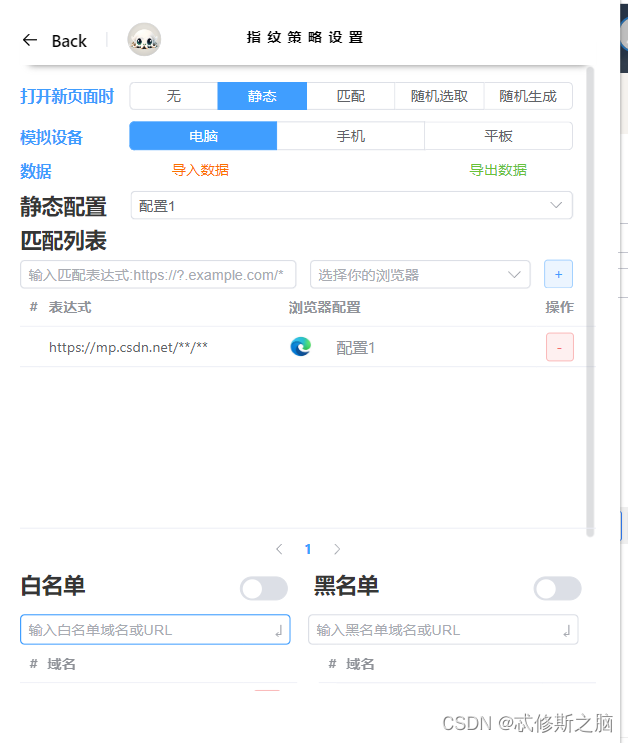 白名单和黑名单中的域名针对的是新开页面时,判断是否要干扰指纹