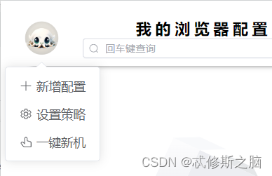 2.主页显示的是插件存储的配置列表,或包含正在使用的临时配置,此时浏览器的配置为空,点击左上角logo: