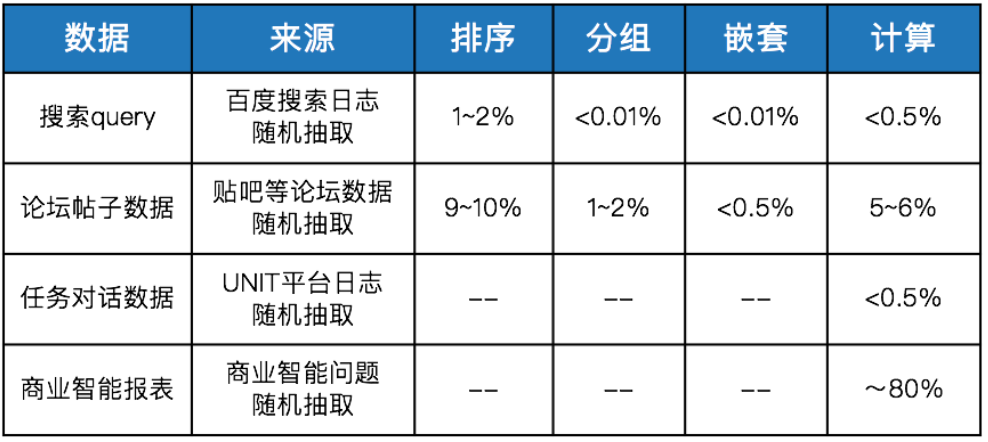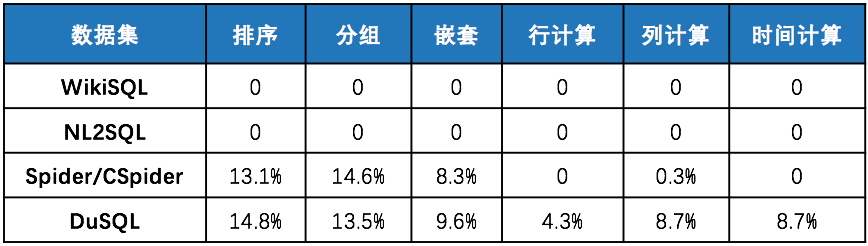 为了更好地覆盖实际应用中常见的问题类型,使构建的数据集在实际应用中发挥更大的价值,我们基于实际应用分析构建了多领域、多表、包含复杂问题的数据集DuSQL。