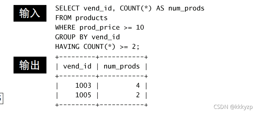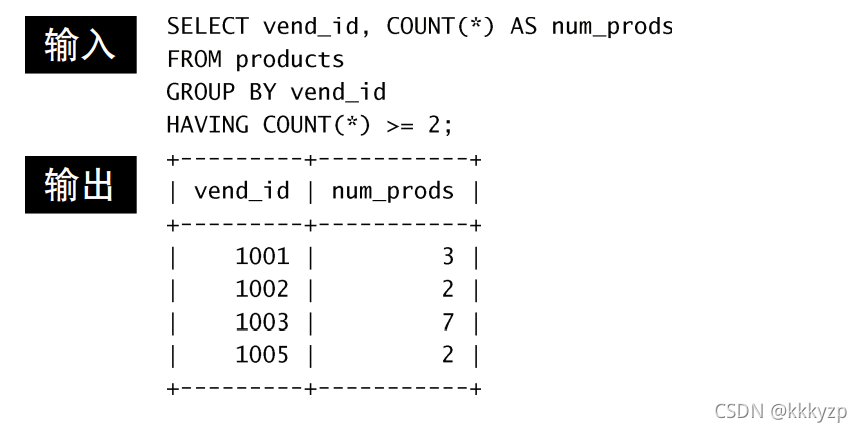 HAVING支持所有WHERE操作符,那么,怎么过滤分组呢?请看以下的例子: