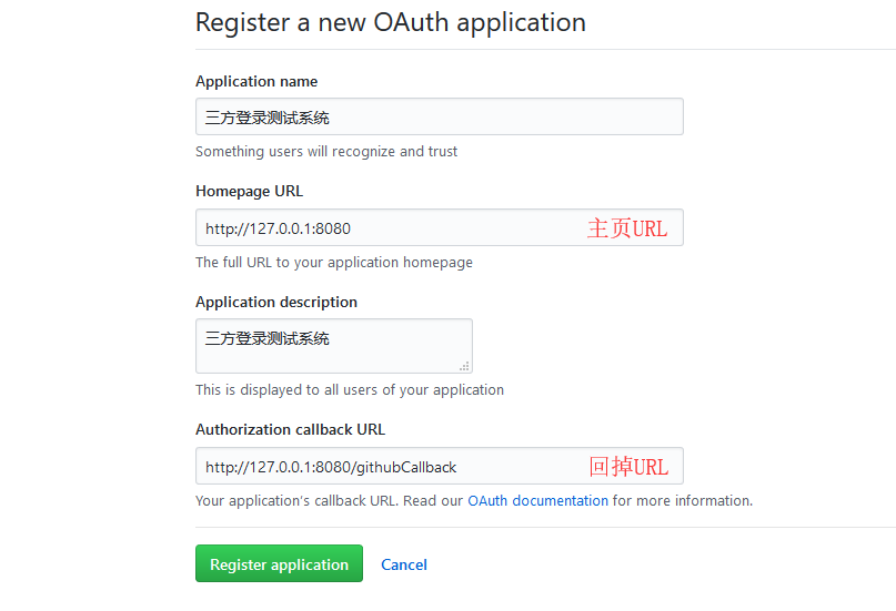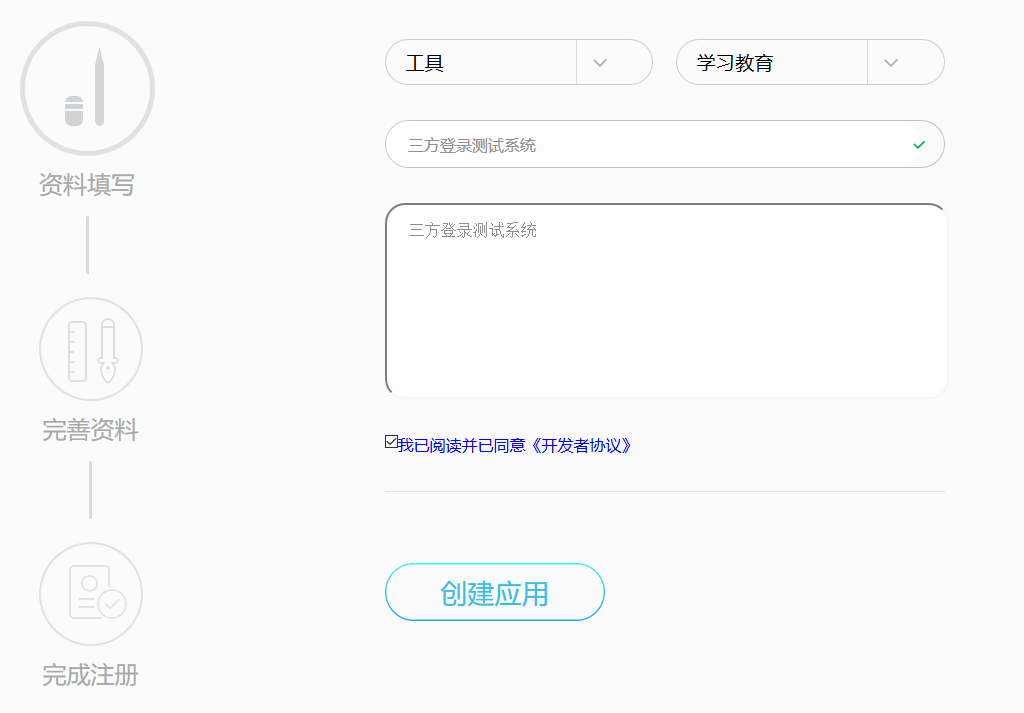 然后注册应用信息,和 GitHub 的步骤大差不差: