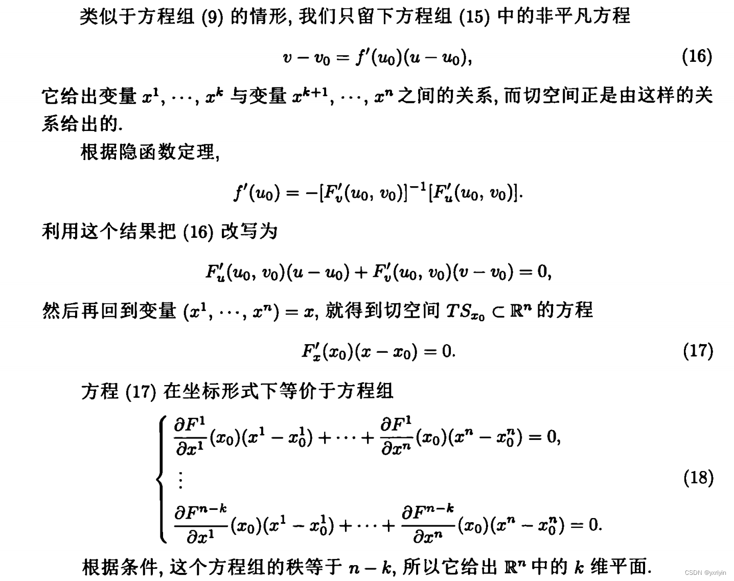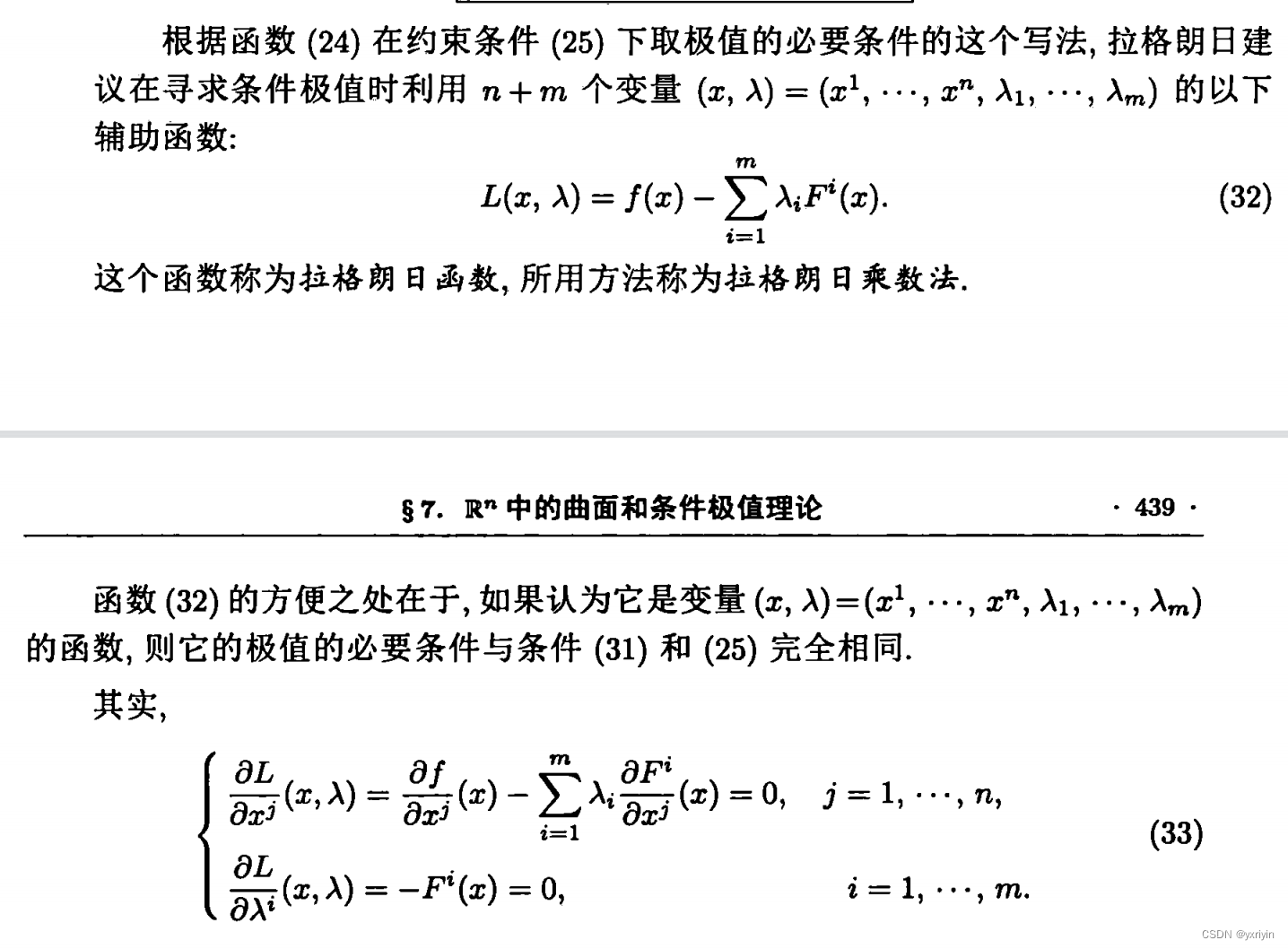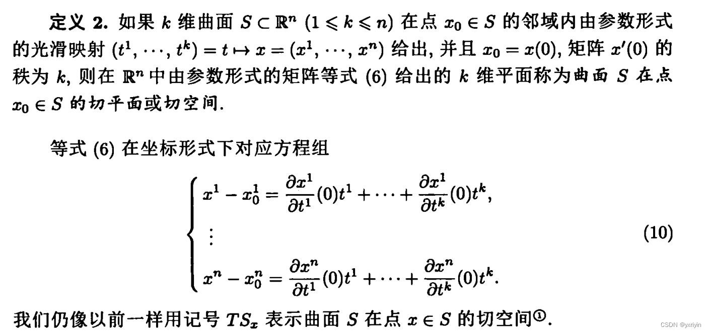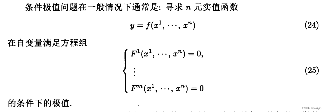 这里要注意,为什么可以认为x只有n-m维度,是因为我们限制了条件极值在D中,而S则是方程组F给定的曲面,而F的秩是m。