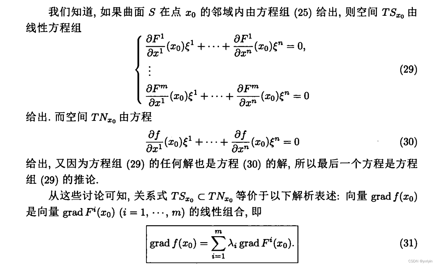同时,克赛和gradf也正交,因为TS属于TN,那么TN的正交补就属于TS的正交补,所以gradf所在的空间是属于gradF,所以就得到了31.