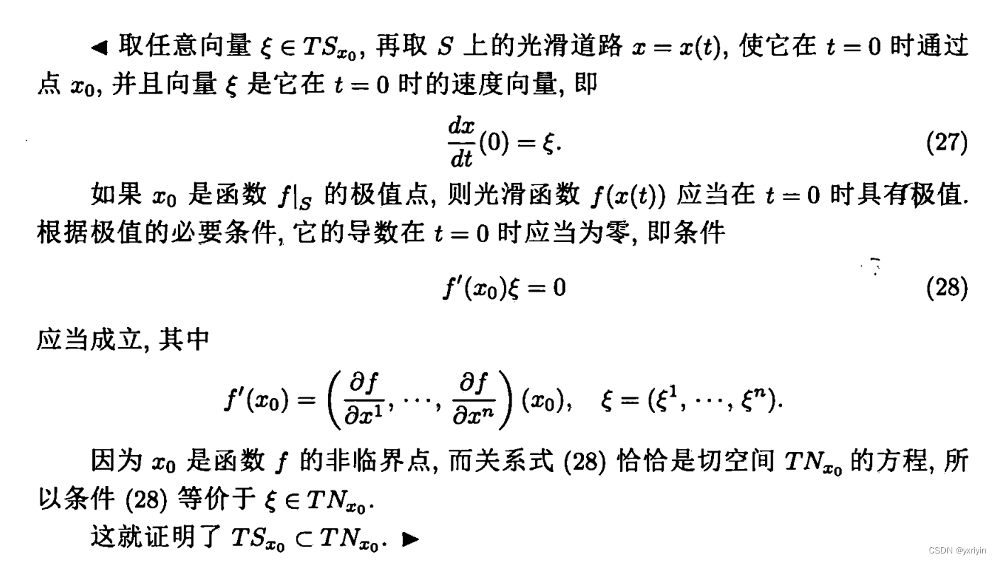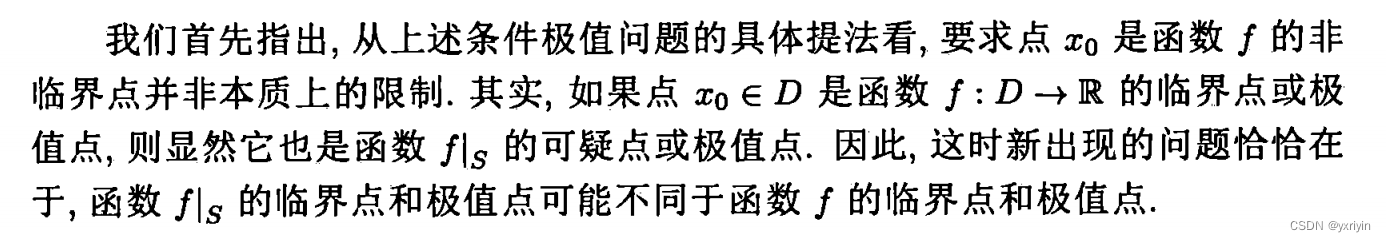 这里提到了非临界点的极值条件。问题在于S下的极值点和f本身的极值点可能不同。