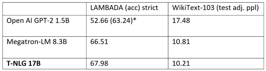 模型预训练完成后,为了验证其性能,微软将 Turing-NLG 和英伟达 Megatron-LM ,以及 OpenAI 的 GPT-2 完整版做了性能对比。