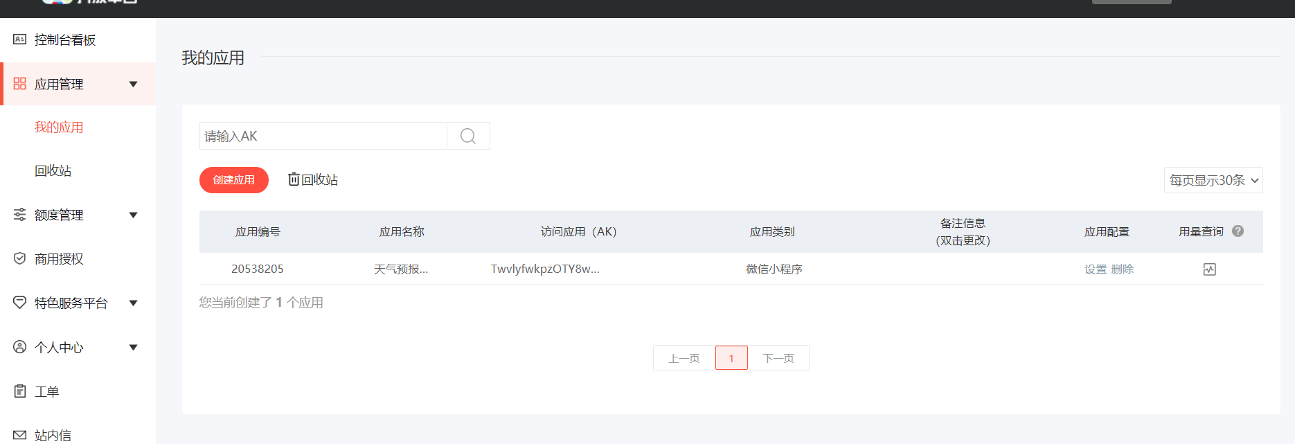 小程序API之天气预报查询及百度APIkey(ak)的申请