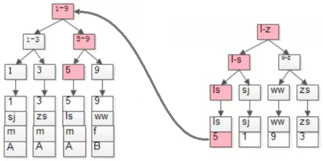 再通过叶子节点的data域中保存的lisi对应的主键值,进行一次B+树查找,找到对应的记录行
