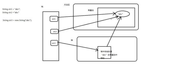 字符串字面值属于常量,存储在方法区的常量池中。