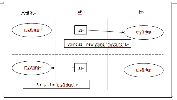 2. String(String original):创建一个字符串对象,在堆内存中创建了一个参数的副本。如果创建字符串对象时,首先检查常量池中是否有该对象,如果有,不进行创建,进行指向;如果没有该字符串对象,才会在常量池中进行创建。