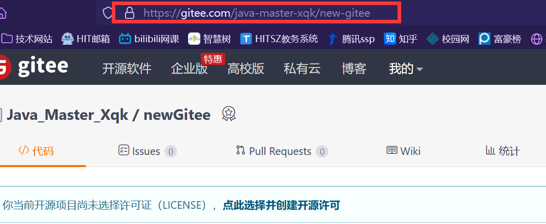 在gitee上新建项目,复制https://gitee.com/xxx/xx.git地址