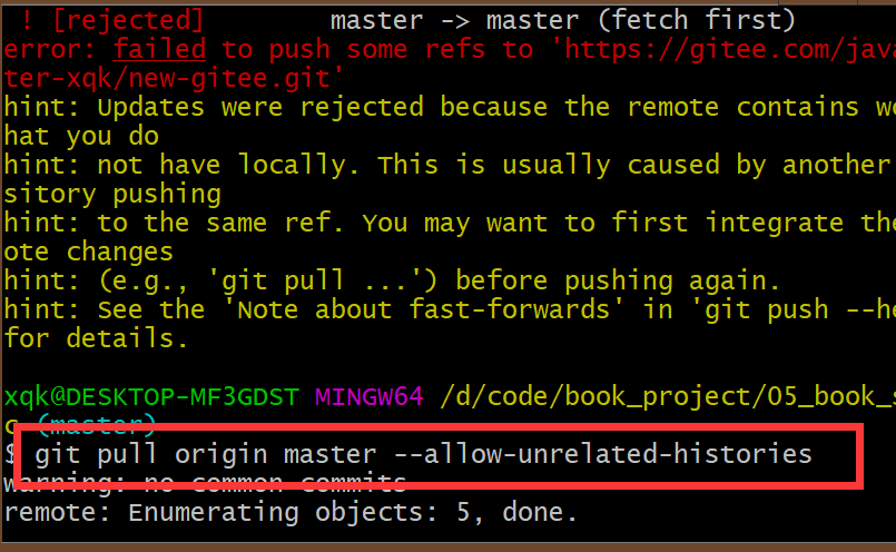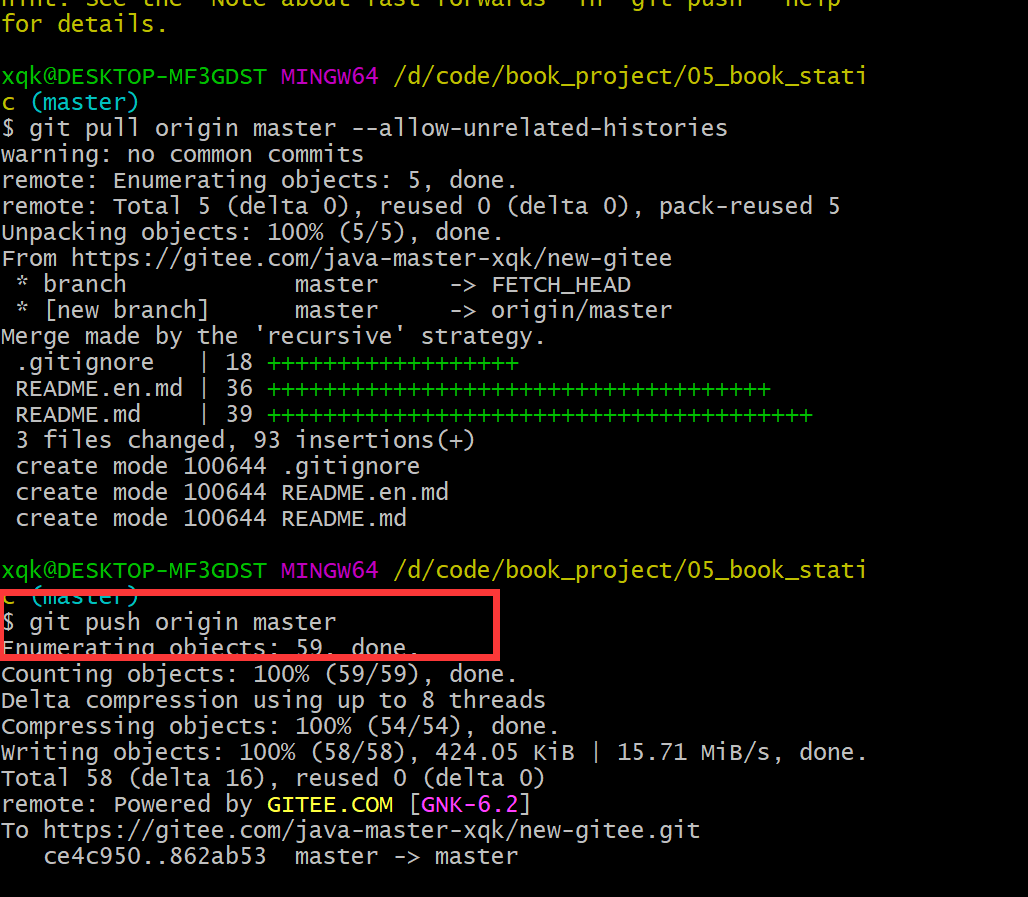 git remote add origin https://gitee.com/java-master.git(上步骤复制的地址)