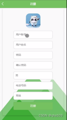 在用户注册界面,通过输入用户账号、用户姓名、密码、性别、电话号码、班级等信息进行注册,如图5-2所示。