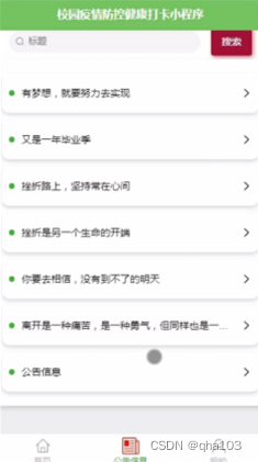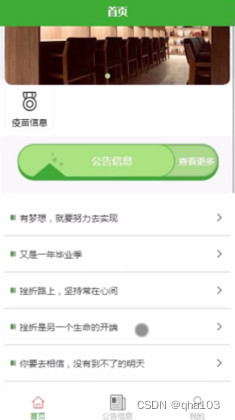 用户登录进入小程序,可查看并使用首页、公告信息、我的等功能模块,如图5-3所示。