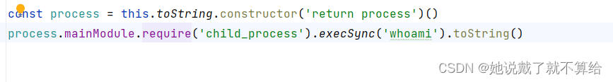 第一行this.toString获取到一个函数对象,this.toString.constructor获取到函数对象的构造器,构造器中可以传入字符串类型的代码。然后在执行,即可获得process对象。