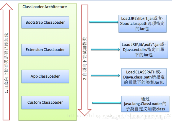 类加载器实例化时进行的操作步骤(加载【查找并加载类的二进制数据】—>链接【1、验证:确保被加载的类的正确性。2、准备:为类的静态变量分配内存,并将其初始化为默认值】—>解析【把类中的符号引用转换为直接引用】 —>初始化【为类的静态变量赋予正确的初始值】)。所有的 Java虚拟机实例必须在每个类或接口被 Java程序“首次主动使用”时才初始化它们。