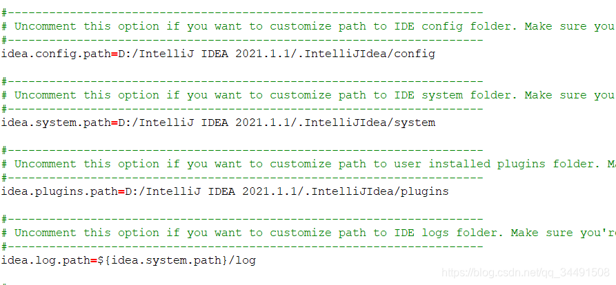 如果之前已经启动idea并进行了相关设置,可以先把原来c盘下面的配置文件复制到非系统盘,如我默认idea配置文件在c:\user\Administrator\.IntelliJiIdea2021.1,将这个.IntelliJiIdea2021.1复制到到D盘Idea安装路径下