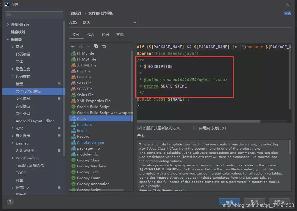 配置完后新建Class时会提示输入我们定义的变量$DESCRIPTION