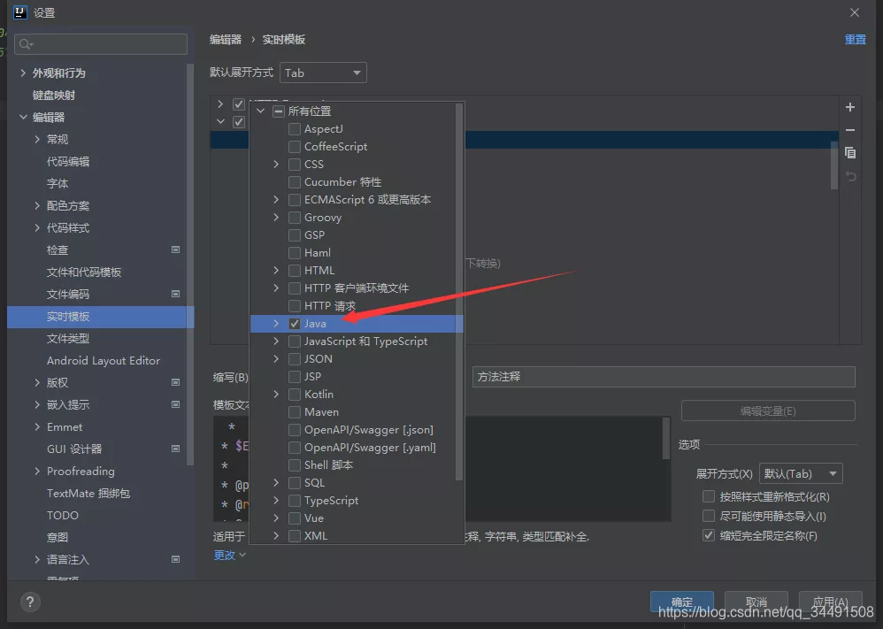 然后在方法前输入/**然后按一下TAB键即可生成方法注释