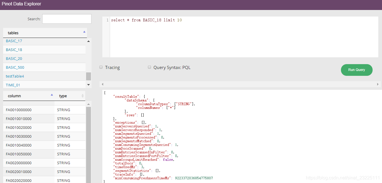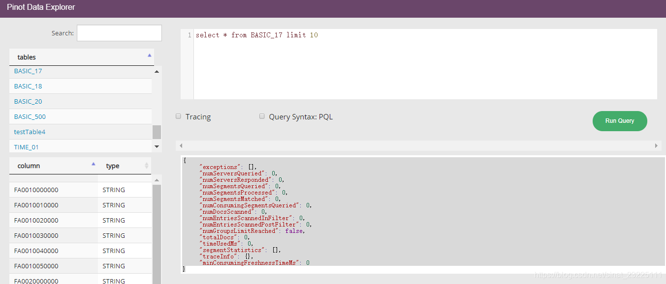 而之前正常的表显示是,多了resultTable字段,因此查找pinot日志