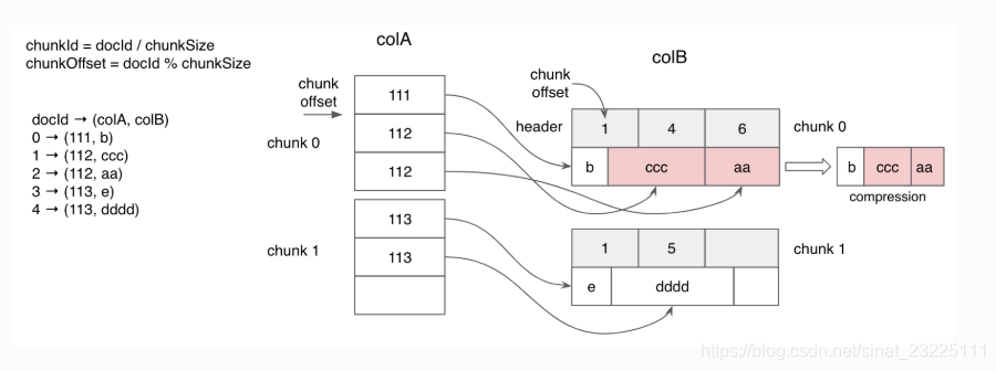 与字典编码的前向索引不同,原始值前置索引直接存储值而不是id。