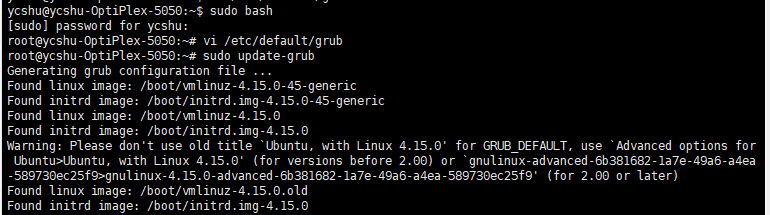 最近做实验要一直使用4.15.0的内核,但是系统自动给更新了内核版本,所以准备通过设置grub的方式设置默认启动内核。