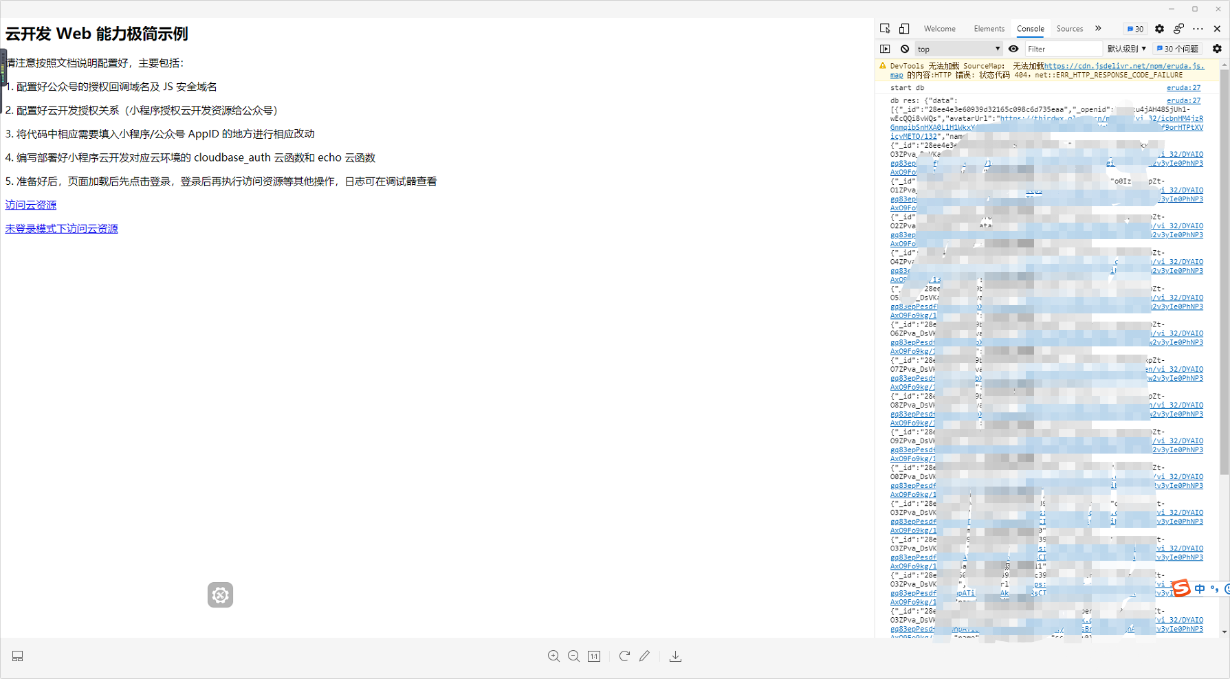 使用未登录模式下访问云资源会报错,