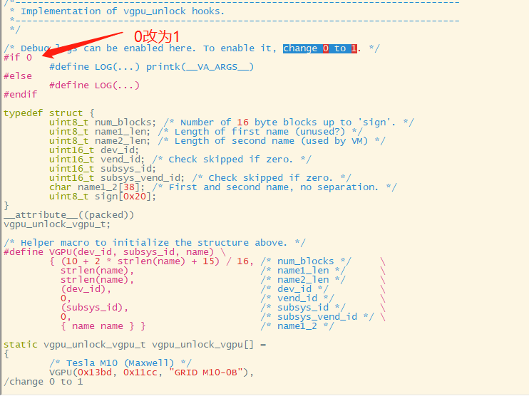 编辑vgpu补丁文件vgpuunlockhooks.c