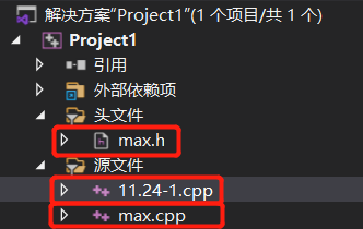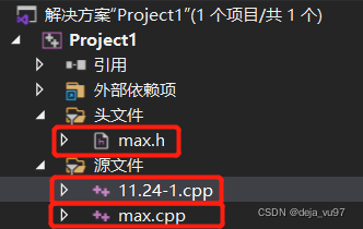 右键单击“头文件”,新建“头文件(.h)”:max.h