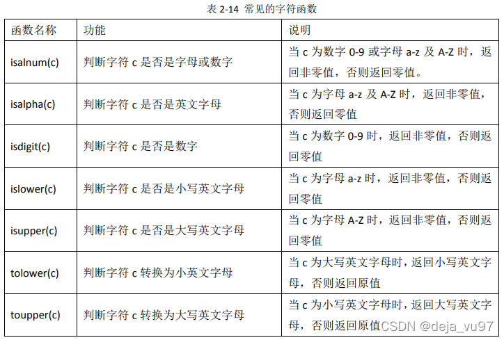 {char a[30] = "LaiXingYu", b[] = "LiuPeiWen", c[] = "LaiXingYu";int n = 3;//按照ascⅡ比较字符串,从左到右比较,字母靠前的小cout << strcmp(a, b) << endl;//-1cout << strcmp(a, c) << endl;// 0cout << strcmp(b, a) << endl;// 1 cout << strcpy(a, b) << endl;//把b复制到a,返回acout << strncpy(a, c, n) << endl;//把b的前n项复制到a,返回acout << strcat(a, b) << endl;//把b连接到a,返回acout << strlen(a) << endl;//返回字符串长度system("pause");return 0;