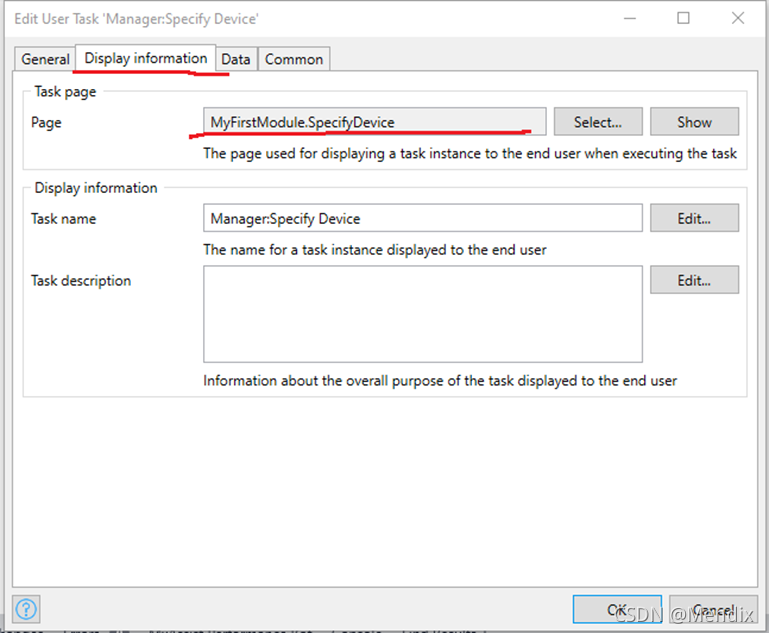 13. 在Display information下,给该user task 新建一个审批页面SpecifyDeice,选择New之后会有两个模板供选择,我们选择UserTaskExtended这个模板,点击OK。