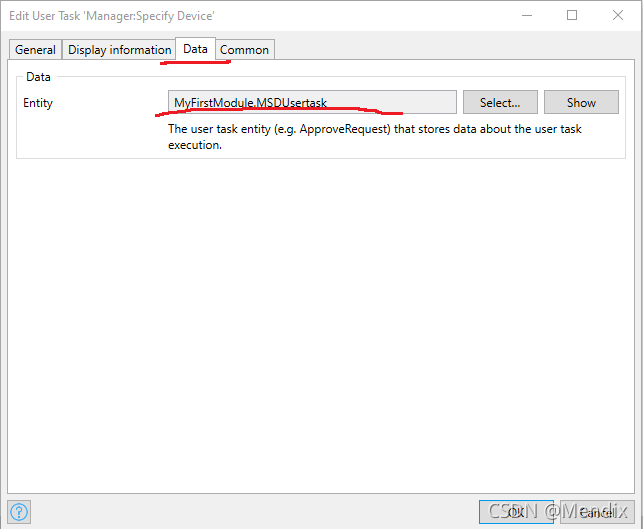 12. 在Data选项下,选择该User Task对应的user task entity。