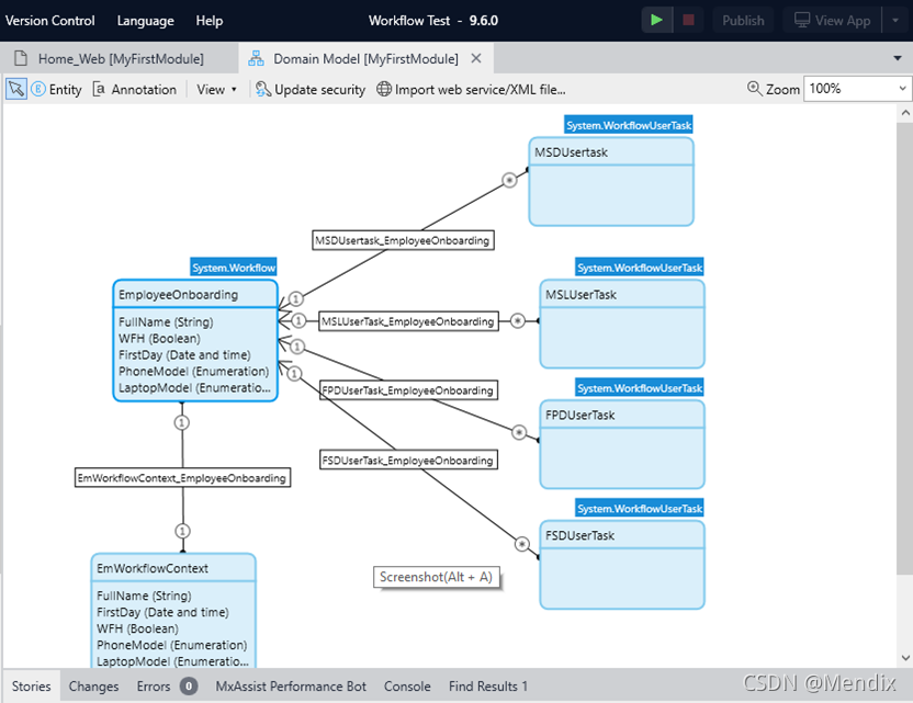 与Mendix Studio Pro 9.0.5版本相比,9.6.0版本在系统模块以及工作流的设计方面做了很多改变,下面就以Mendix Studio Pro 9.6.0完成一个工作流示例加以说明。