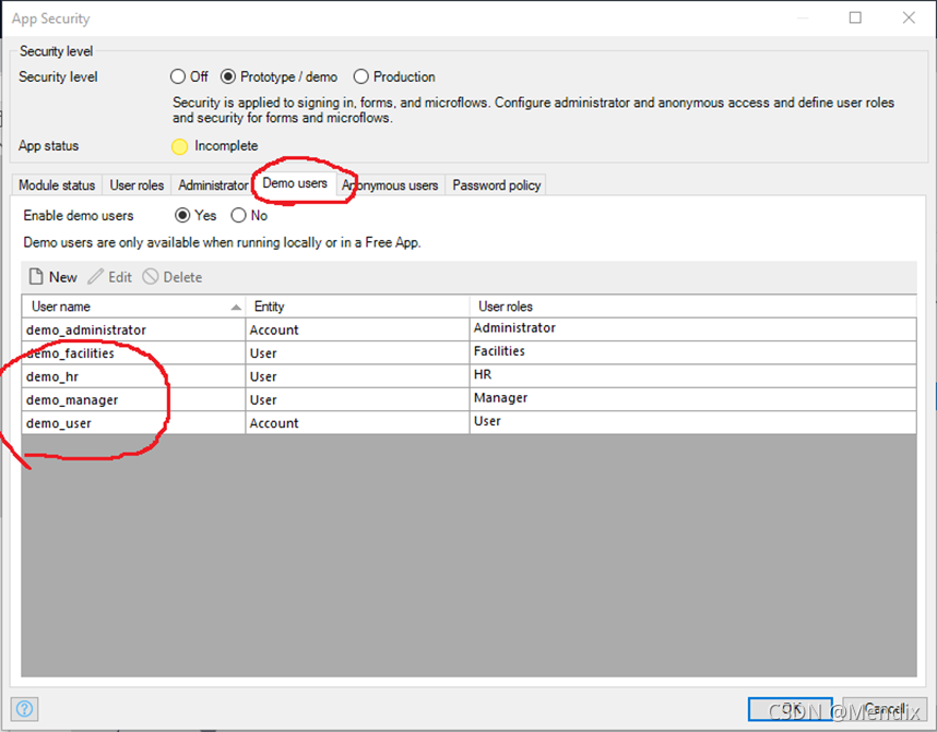 17. 最后,我们还需要在App Security中新建以下Demo users。