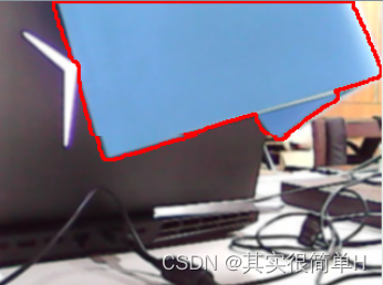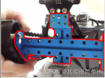 while True:ret,frame = usb_cap.read()#高斯模糊处理frame=cv2.GaussianBlur(frame,(5,5),0)hsv= cv2.cvtColor(frame,cv2.COLOR_BGR2HSV)#ROI及形态学找到小球进行处理mask=cv2.inRange(hsv,ball_yellow_lower,ball_yellow_upper) # 掩膜处理mask=cv2.erode(mask,None,iterations=2)mask=cv2.dilate(mask,None,iterations=2)mask=cv2.GaussianBlur(mask,(3,3),0)res=cv2.bitwise_and(frame,frame,mask=mask)cnts=cv2.findContours(mask.copy(),cv2.RETR_EXTERNAL,cv2.CHAIN_APPROX_SIMPLE)[-2] #发现小球# 发现轮廓后才进行处理if len(cnts) > 0:epsilon = 0.0005*cv2.arcLength(cnts[0],True)approx= cv2.approxPolyDP(cnts[0],epsilon,True)frame = cv2.drawContours(frame,[approx],0,(0,0,255),2) vertex_array = approx.reshape(-1, 2) # 将坐标数组转换为二维数组pid_x = int(np.mean(vertex_array[:, 0])) # 求x坐标的平均值并转换为整型pid_y = int(np.mean(vertex_array[:, 1])) # 求y坐标的平均值并转换为整型cv2.imshow("mask", mask)cv2.imshow("MAKEROBO Robot", frame) # 显示图像if cv2.waitKey(1)==119:break # do a bit of cleanup