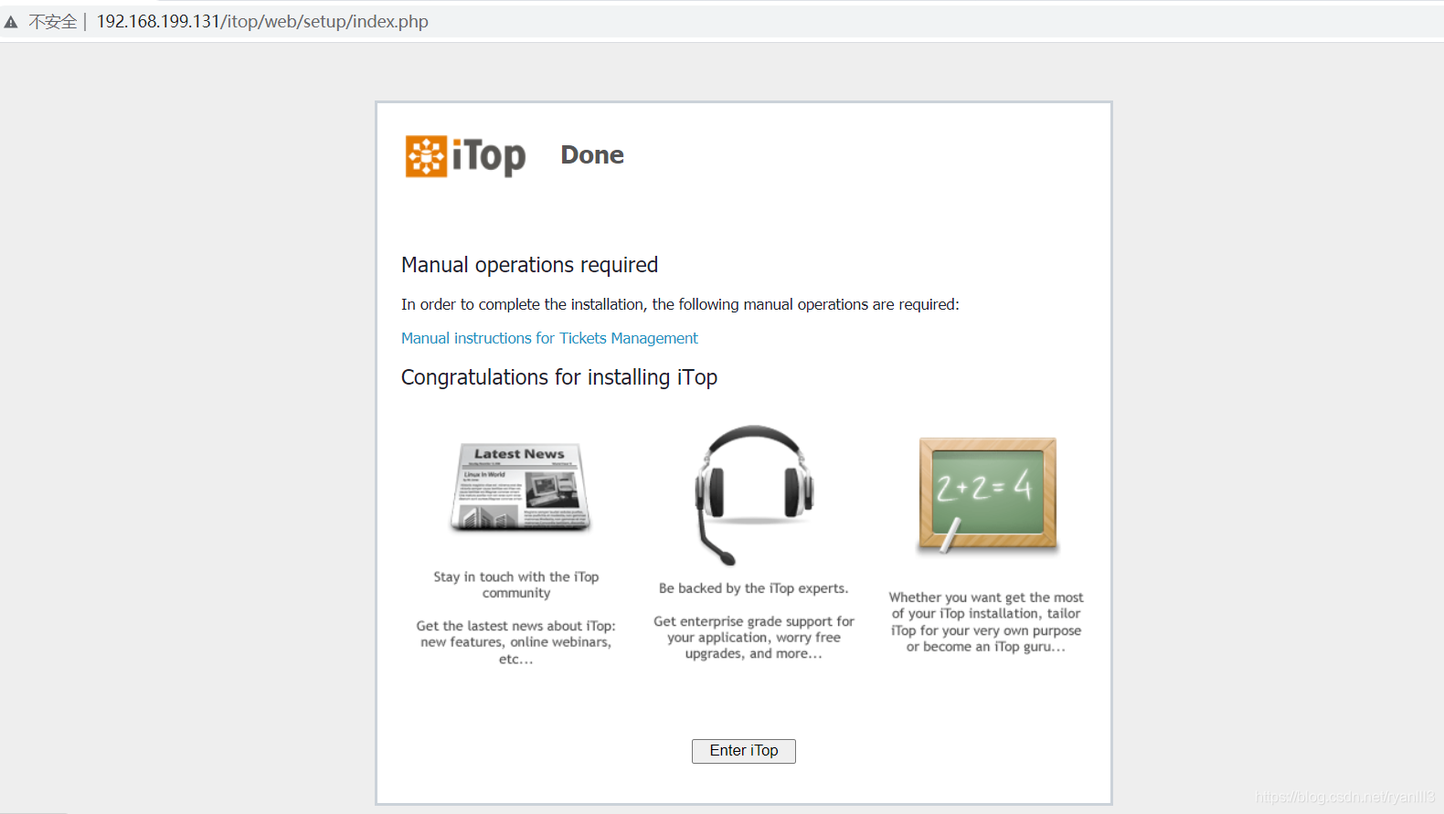 后续选择,建议选择ITIL的流程。直至下图,选择 Enter ITOP.