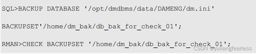 CHECK BACKUPSET... 命令用于校验特定备份集,每次只能检验一个备份集