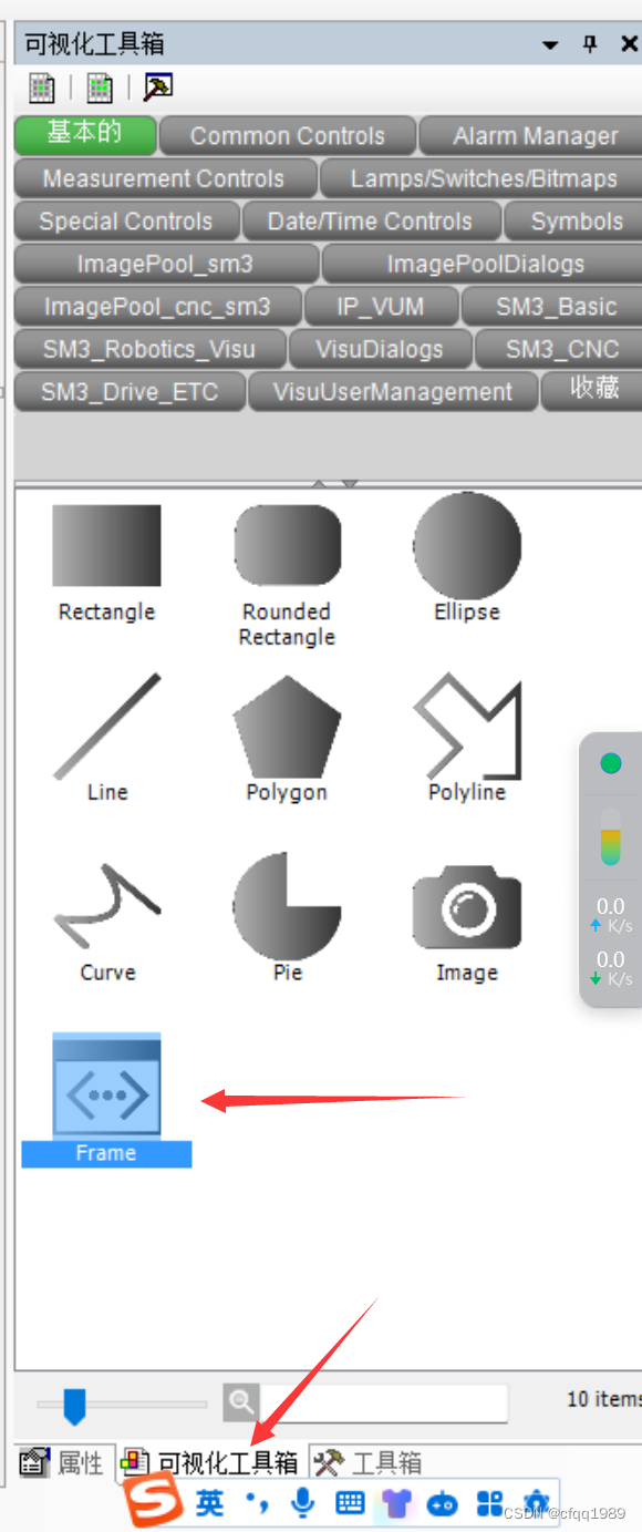 圆盘的加载方法: 【可视化工具箱】》【基本的】》【Frame】