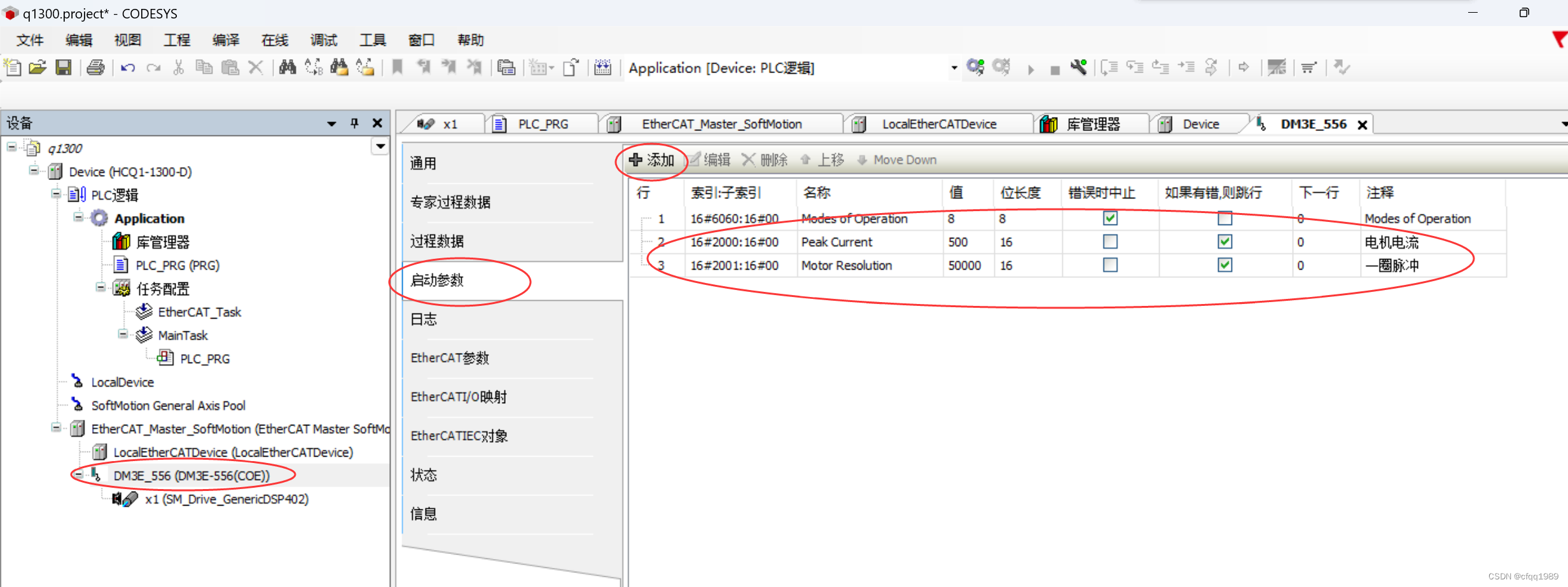 2再修改电机一圈脉冲当量。 【参考:雷赛 0x2001】在驱动器页》SDO启动参数》添加