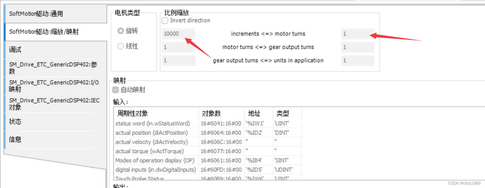 分母:一圈的脉冲数【例如:50000就是上位机发5万脉冲,电机转1圈】