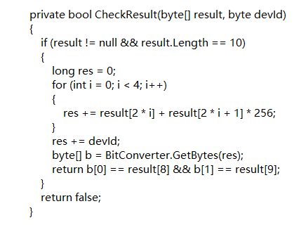 读取校验:读取校验按照协议进行校验和累加,最终结果转换2个字节返回,如下所示: