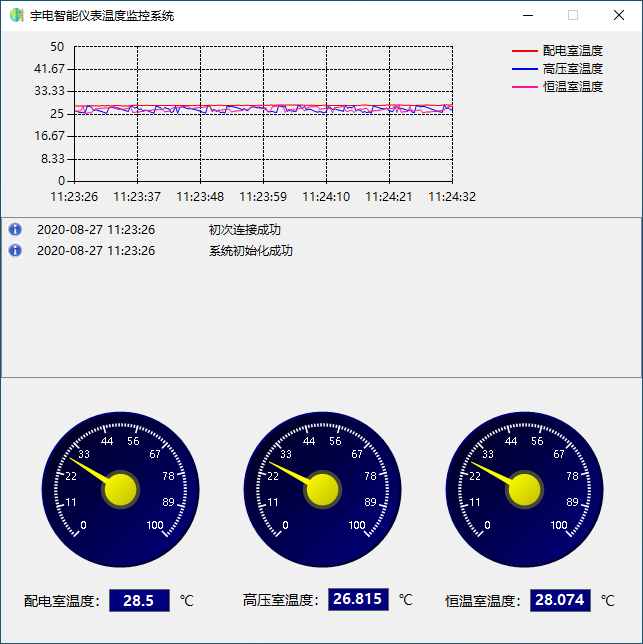 通信库编程完成后,就可以进行上位机开发,本上位机系统主要是实时采集三个不同地点的温度,通过实时曲线进行显示并存储到数据库,便于后续分析。