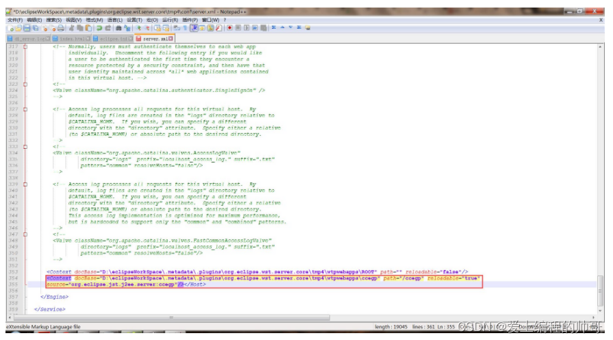 或者打开D:eclipseWorkSpace.metadata.pluginsorg.eclipse.wst.server.core mp4confserver.xml,查看