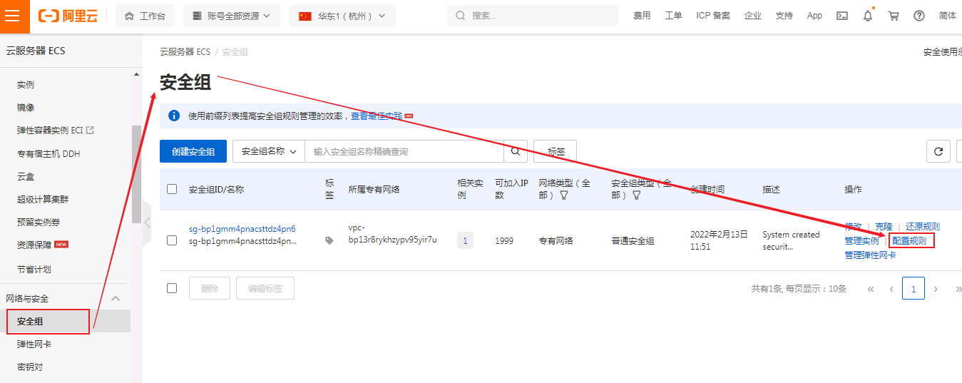 先登录阿里云,打开ecs控制台,找到【安全组】--【配置规则】